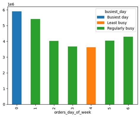 Here we can see the busiest (and least busiest) days of the week according to orders