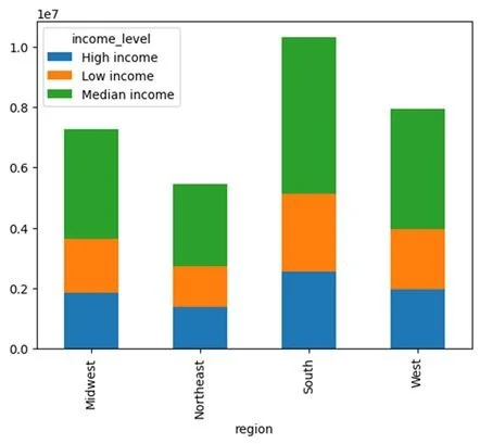 The graph above is showing us the breakdown between income and region. We can clearly see the breakdown between age, region and income in the two graphs above and we are able to get a real clear picture of the types of customers we have, where are they located, and how much income they possess.